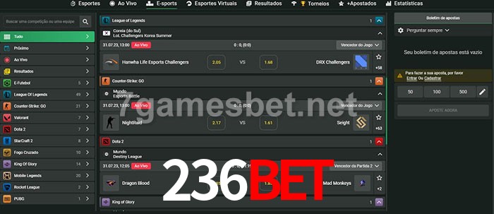 O 236bet oferece uma grande seleção de opções de apostas em e-sports com probabilidades competitivas